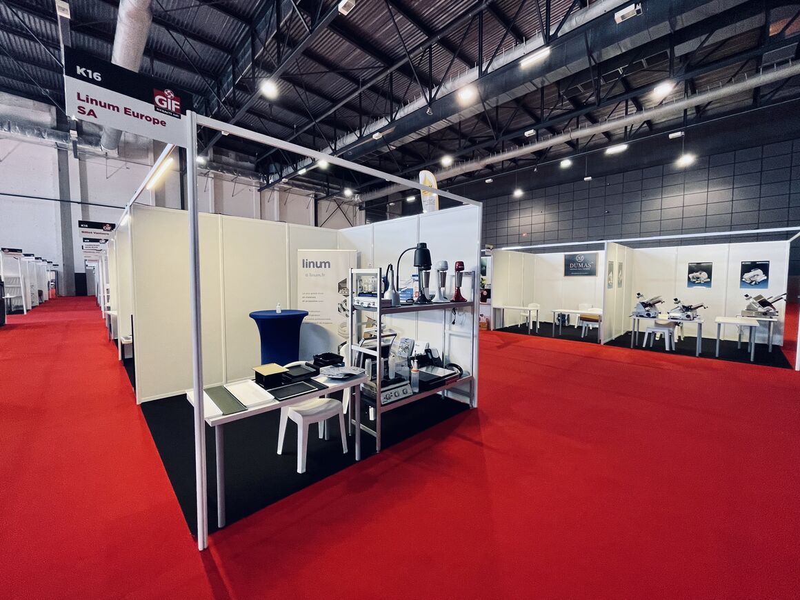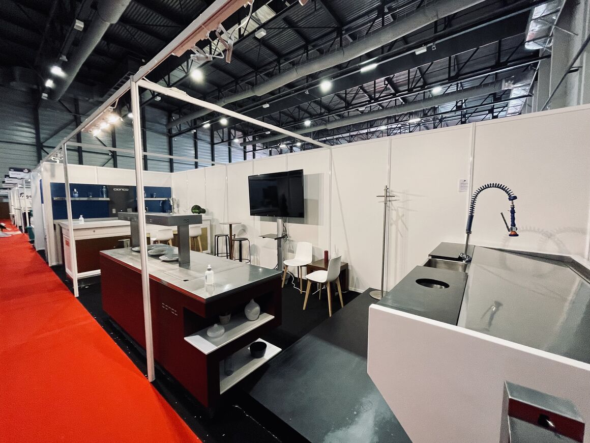 2200m² de stands modulaires blancs dans les deux halls de la halle d'Iraty à Biarritz Lieu : Biarritz Date : 2019-09-14Pose et montage de stands equipés pour le salon Gif 2021