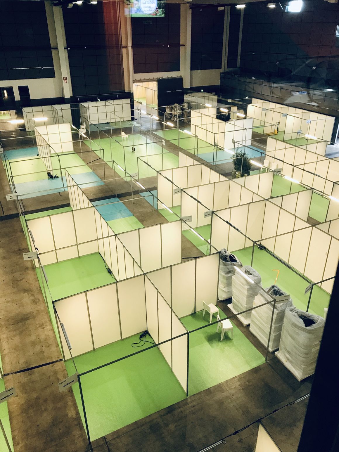 Installation de 2000m² de stands modulaires dans les deux halls de la halle d'Iraty à Biarritz Lieu : Biarritz Date : 2019-09-14Stands equipés (moquette et lumière) pour le salon professionel Sévéa en Septembre 2019