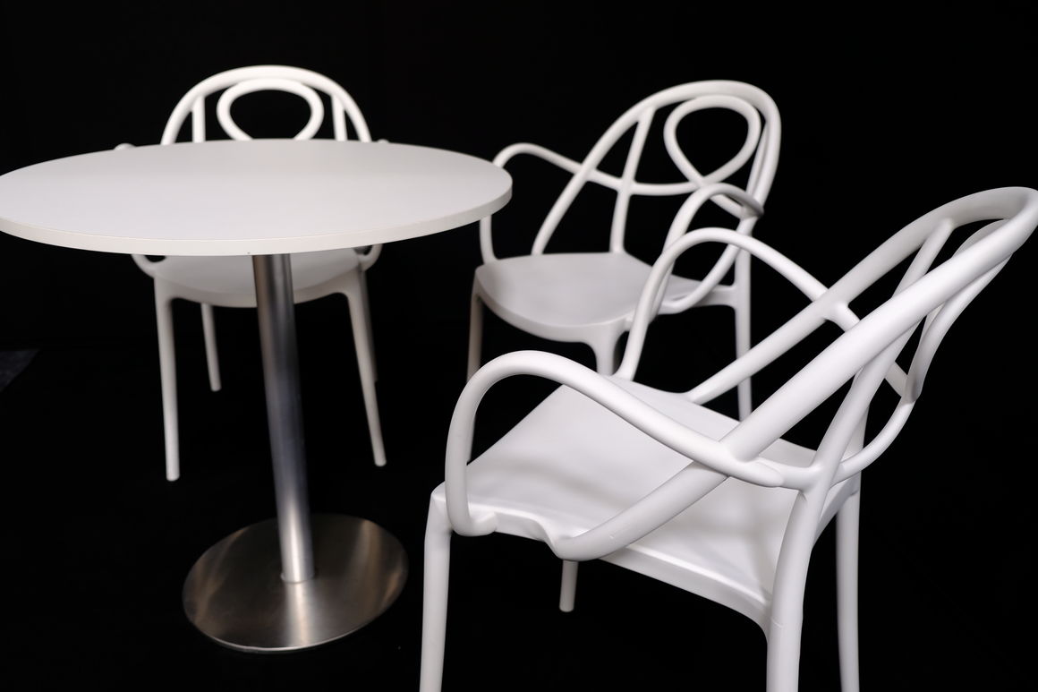 Dotation Exposant Europa Dotation Exposant Alex Dotation d'accueil, 1 Comptoir et 2 tabourets Alex Table Dotation planche pieds gris ou inox Comptoir d'Accueil blanc ou noir Ensemble Alex Haut Ensemble Miura Blanc Mange-Debout Miura Blanc Mange-Debout Lumineux Eguzki Chaise Alex