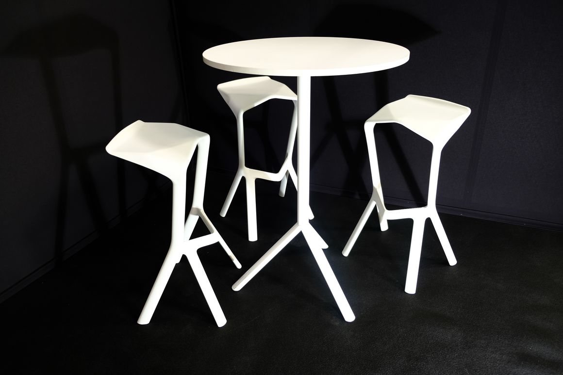 Dotation Exposant Europa Dotation Exposant Alex Dotation d'accueil, 1 Comptoir et 2 tabourets Alex Table Dotation planche pieds gris ou inox Comptoir d'Accueil blanc ou noir Ensemble Alex Haut Mange-Debout Miura Blanc Mange-Debout Lumineux Eguzki Chaise Alex Fauteuil Club Blanc