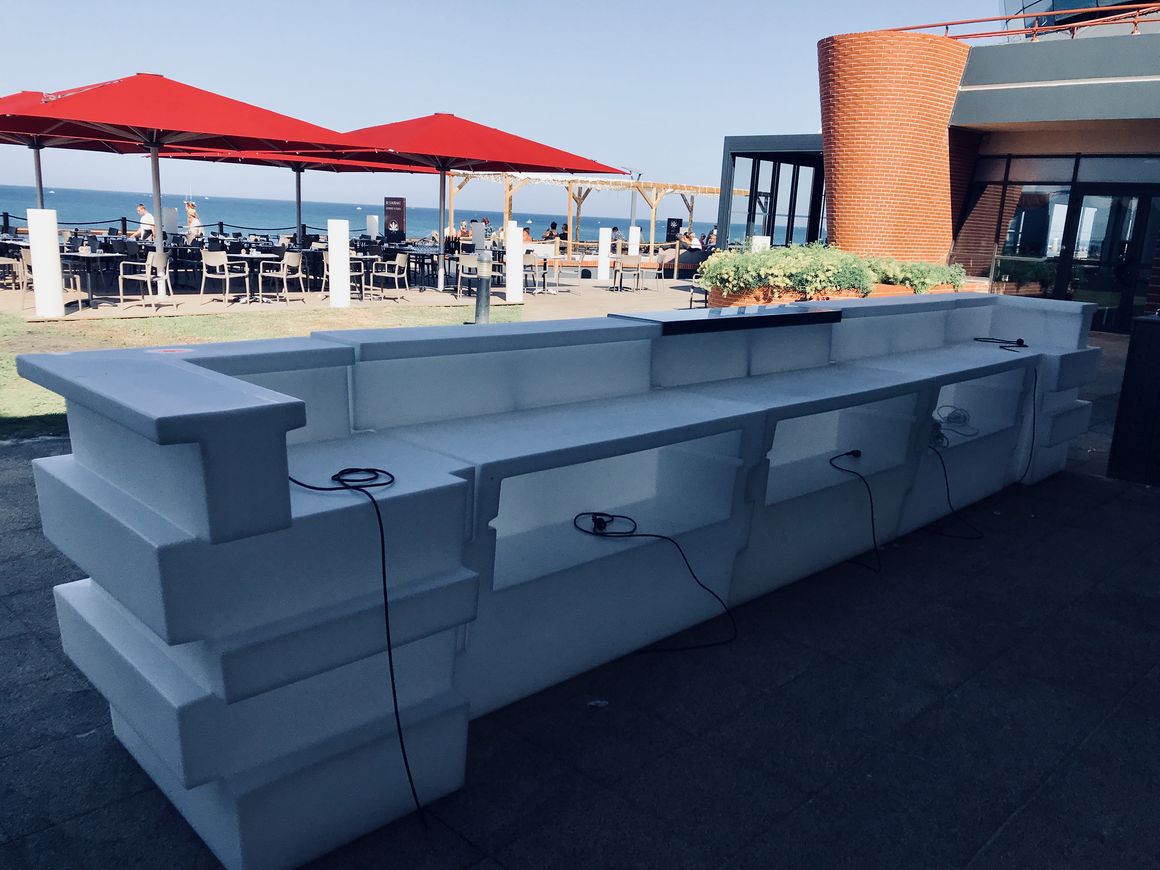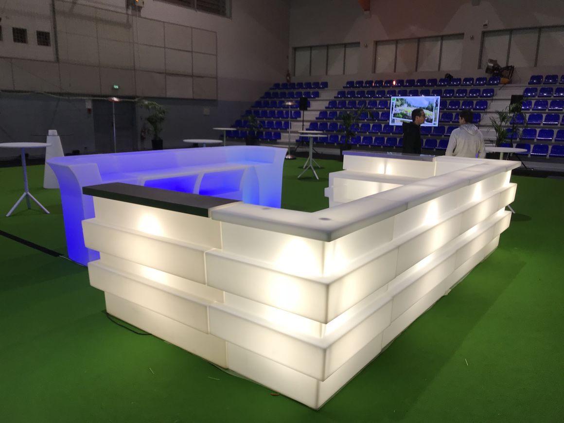 Dimensions : 130 par 90cm, on peut ainsi obtenir plus de 8 mètres linéaires de Bar avec plusieurs éléments et les corners.