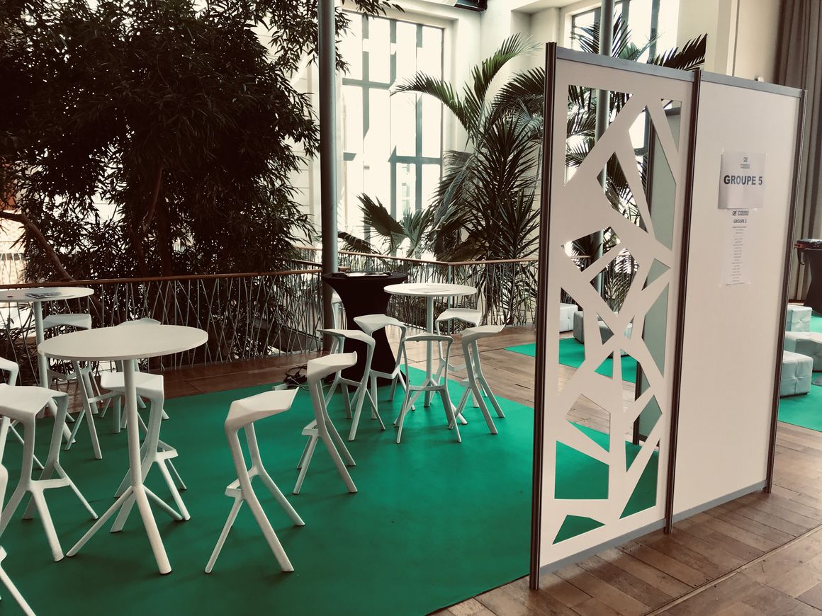 • Création et agencement de stuctures de stands hauteur 2,40m avec remplissage en blanc ou ajourée