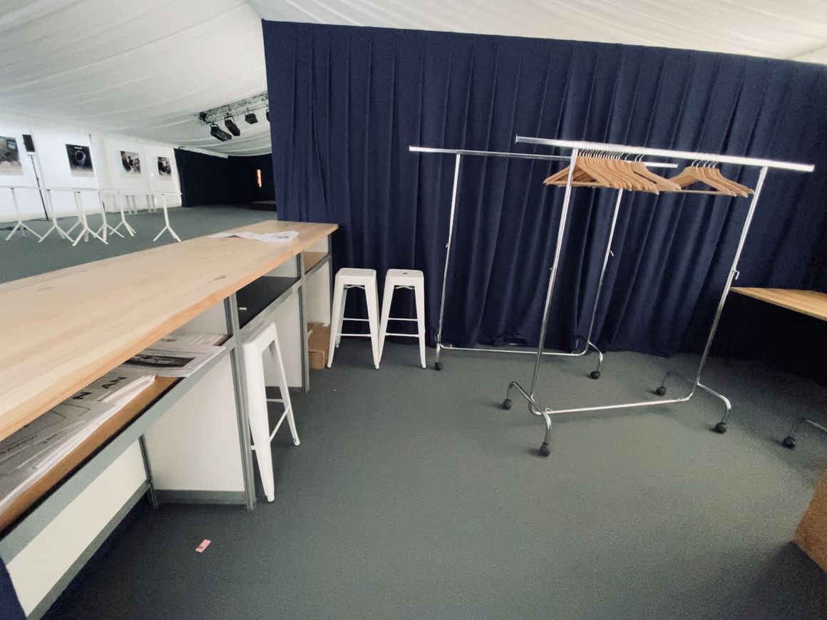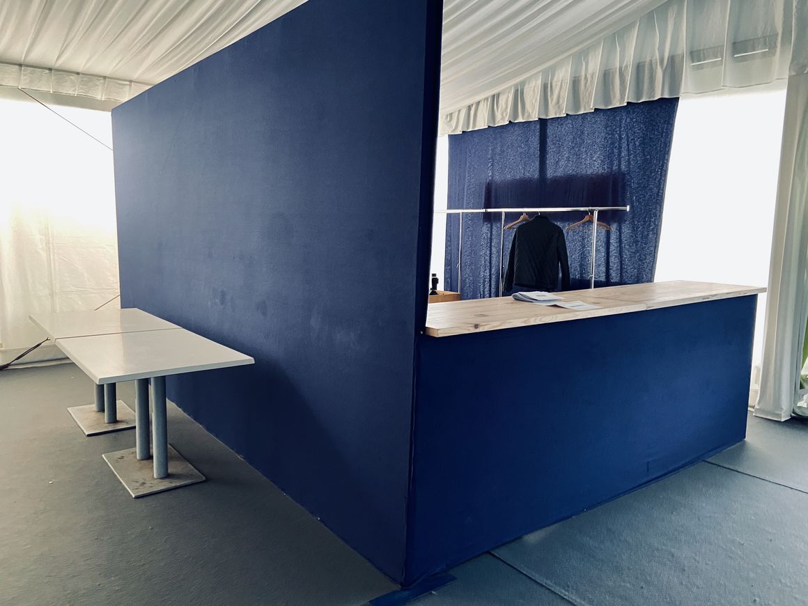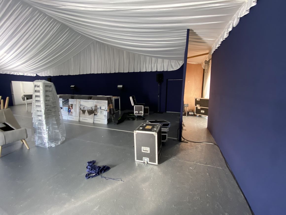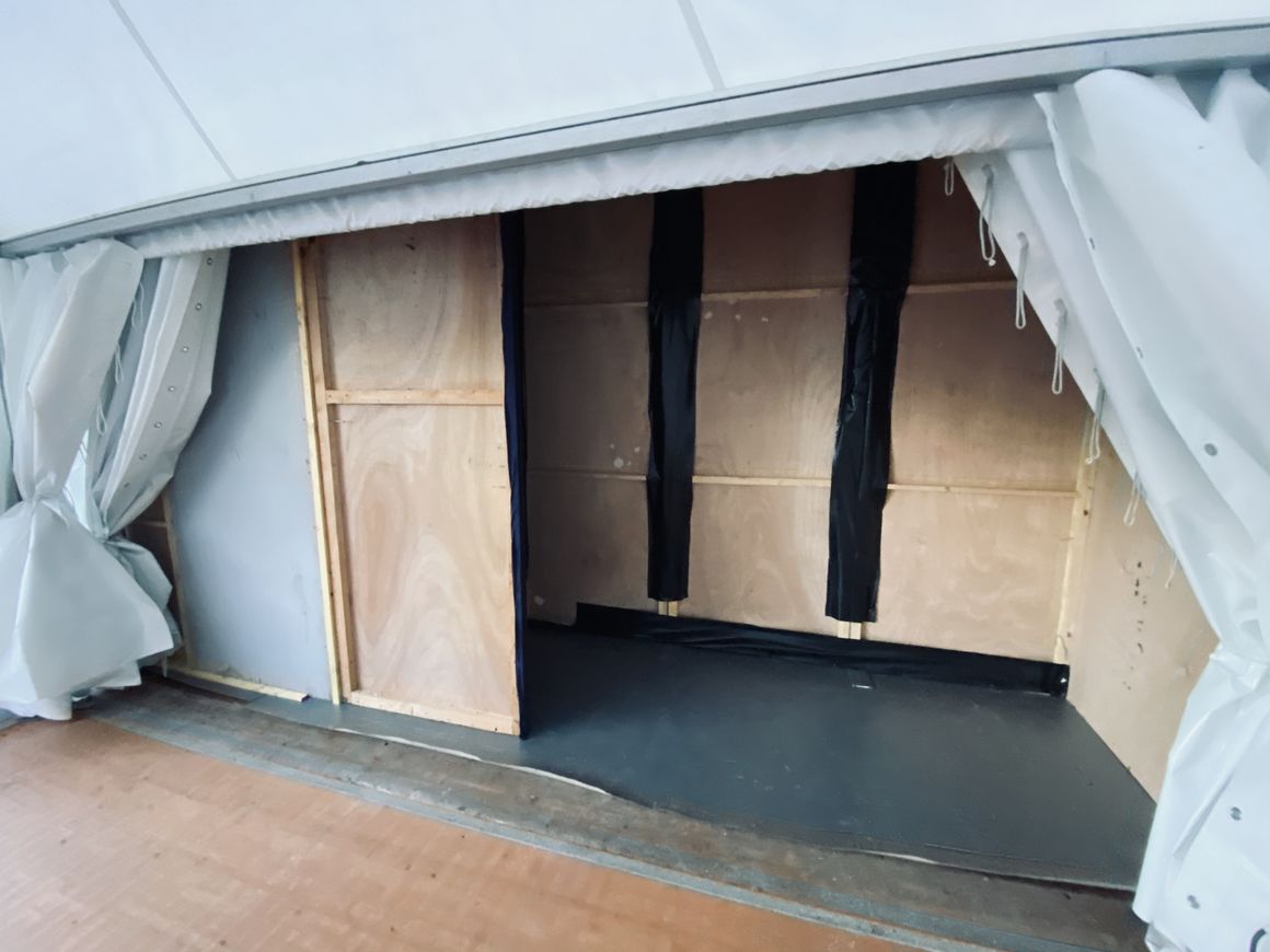 •  Un agencement de cloisons CP modulaires recouvertes de coton gratté vous permet de créer ou délimiter des espaces, de créer des vestiaires ou d'habiller l'intérieur d'un chapiteau